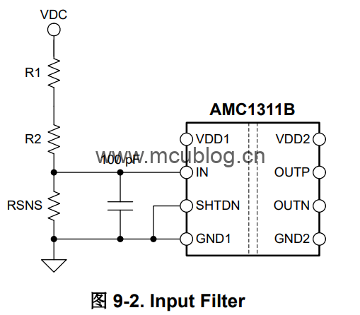 这里主要考虑几个方面,首先是要有RC滤波电路,滤除高频杂波。然后要把输入电压限制在2V以内,一般通过电阻分压的方式实现。最后,SHTDN管脚要接地。