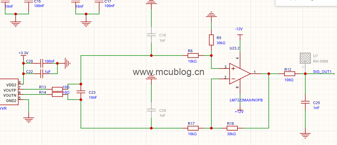 当然,你可以不使用手册推荐的输出电路,我这里使用的是差分+放大,把输出电压实现了3倍的放大(因为要送入PLC)。如图: