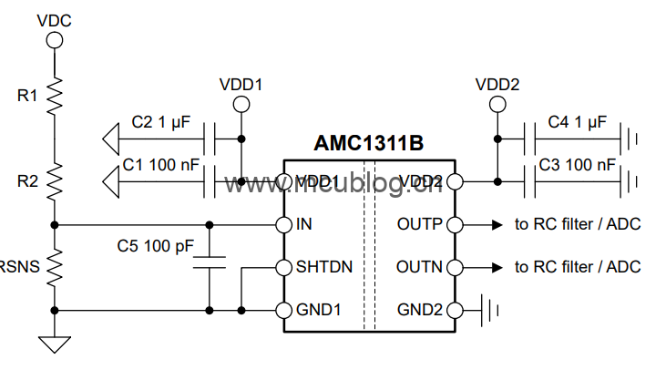 之前分享过基于光耦芯片HCNR201的隔离电压采样方案,然后下面评论有朋友分享了另一个芯片:AMC1311B(有没有B我记不清了),说这个芯片的使用更简单,外围器件也更少。当时想的是,后面有机会试试,没想到机会这么快就来了。