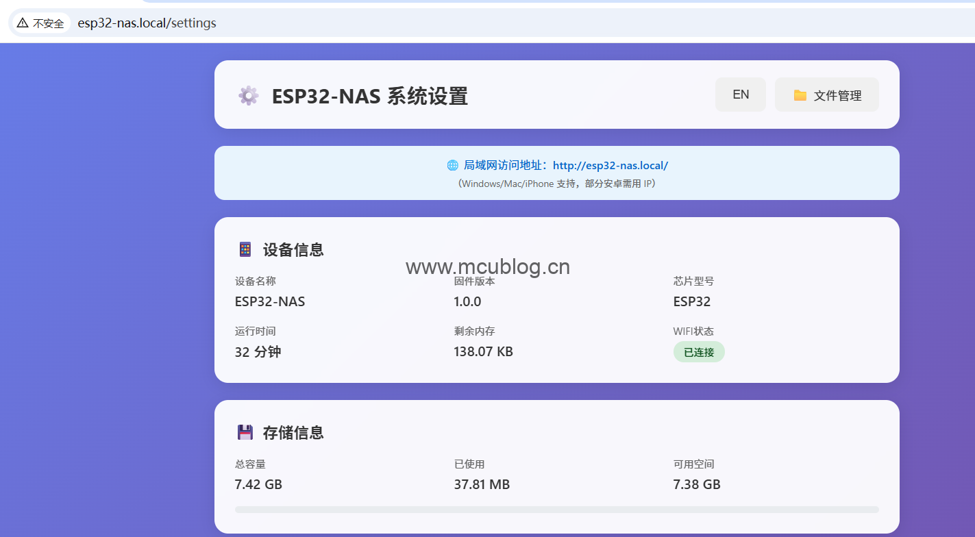从实用性看,几乎为零。因为ESP32的性能摆在这里,一个MCU级别的东西不可能做出真实NAS级别的性能。但是,从功能上看,基本都是实现了的。