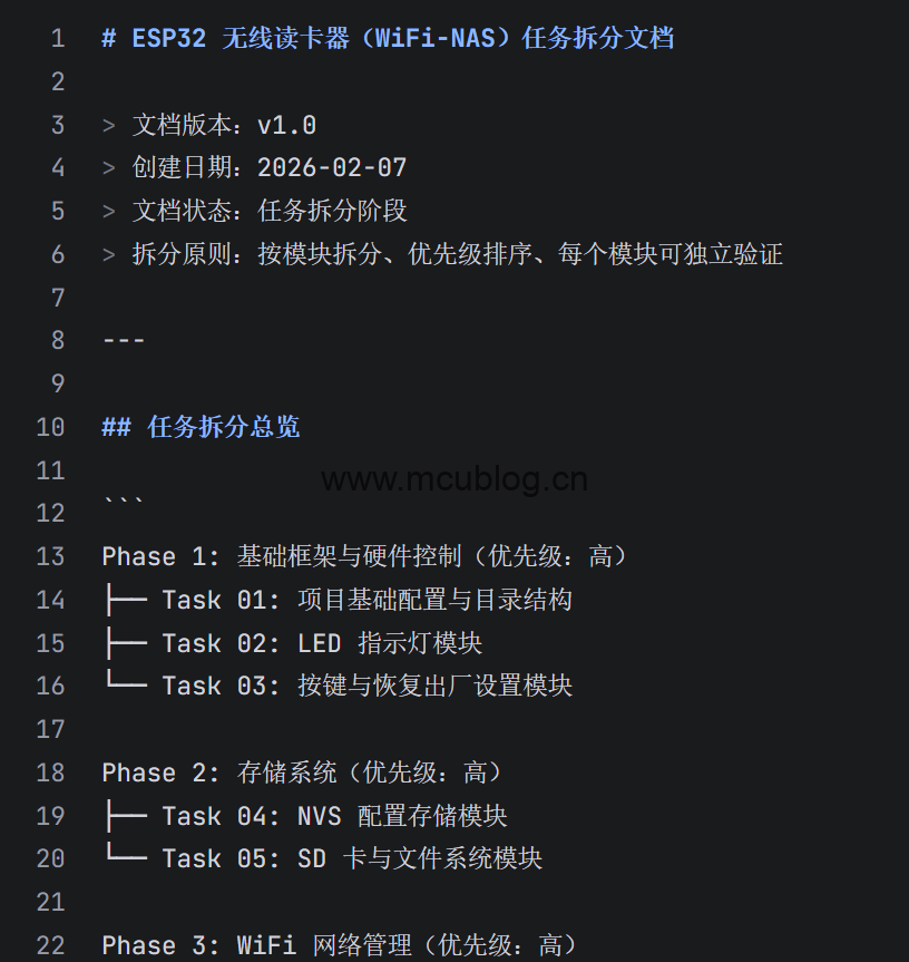 这里它总共分为了20个Task,每完成一个,由我确认后,再进行下一个。