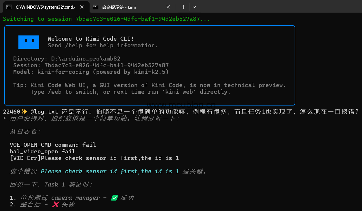 我在进行到拍照这个阶段的时候,频繁遇到了问题。我已经明确跟AI说了arduino的示例在哪,都支持各种拍照需求。但至少3~5次,要么编译报错、要么运行报错。我甚至都有情绪了。