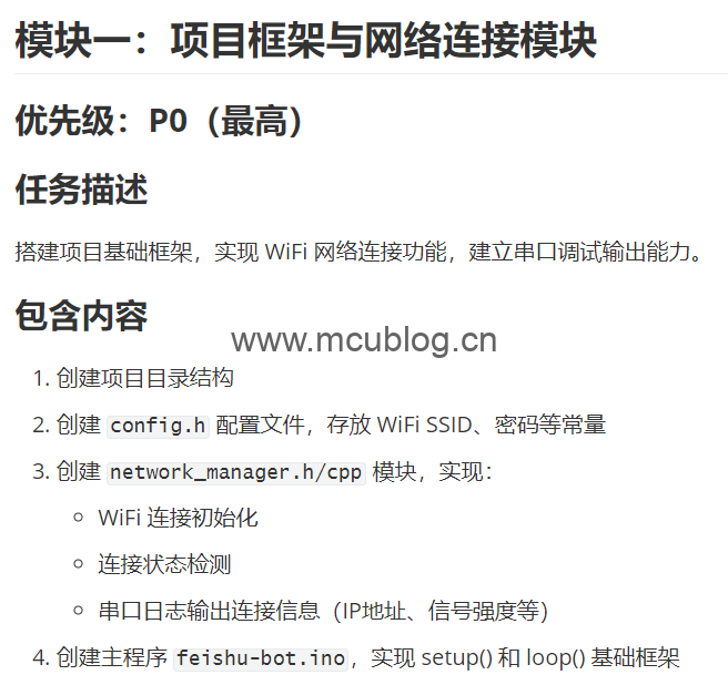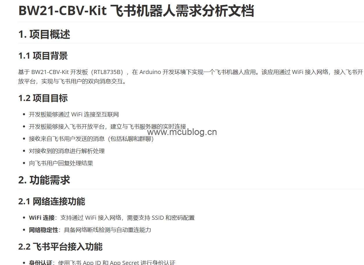 所以,我让AI参照python中自动回复机器人的实现流程,来给BW21这个板子编程。于是,我得到了这样一个需求文档: