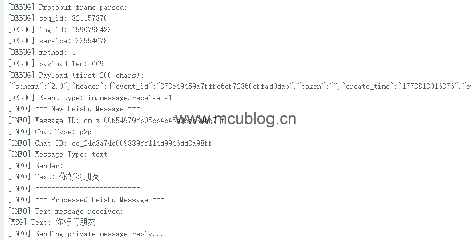 任务3是通过websocket接入飞书服务器,能够显示飞书手机端发送的消息。
