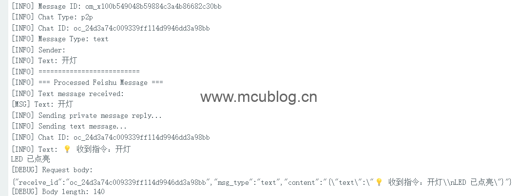 接下来进行模块5:消息回复模块,飞书收到机器人回复、LED控制。