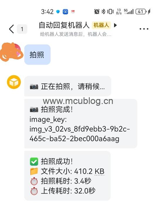很快,我在飞书发送拍照命令,然后就得到了这个: